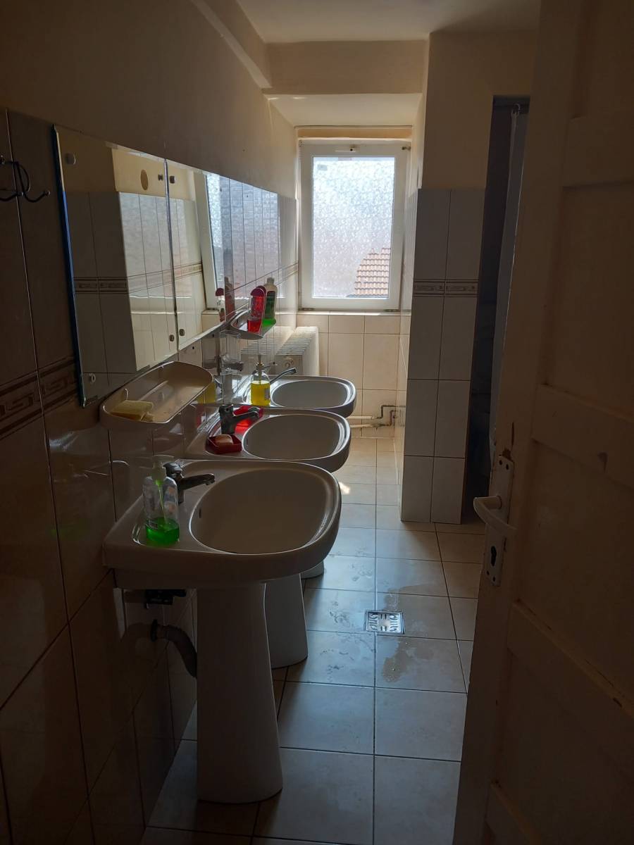 – gresie si faianta sparte, cu bucati lipsa, urme de mucegai