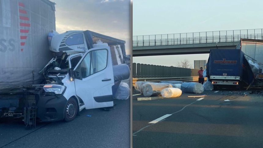 Un accident rutier deosebit de grav s-a produs pe autostrada A1, la kilometrul 535, în apropiere de Arad, pe sensul de mers spre Timișoara. În urma impactului, traficul se desfășoară momentan doar pe banda de urgență, autoritățile estimând reluarea circulației în condiții normale în jurul orei 21:00.