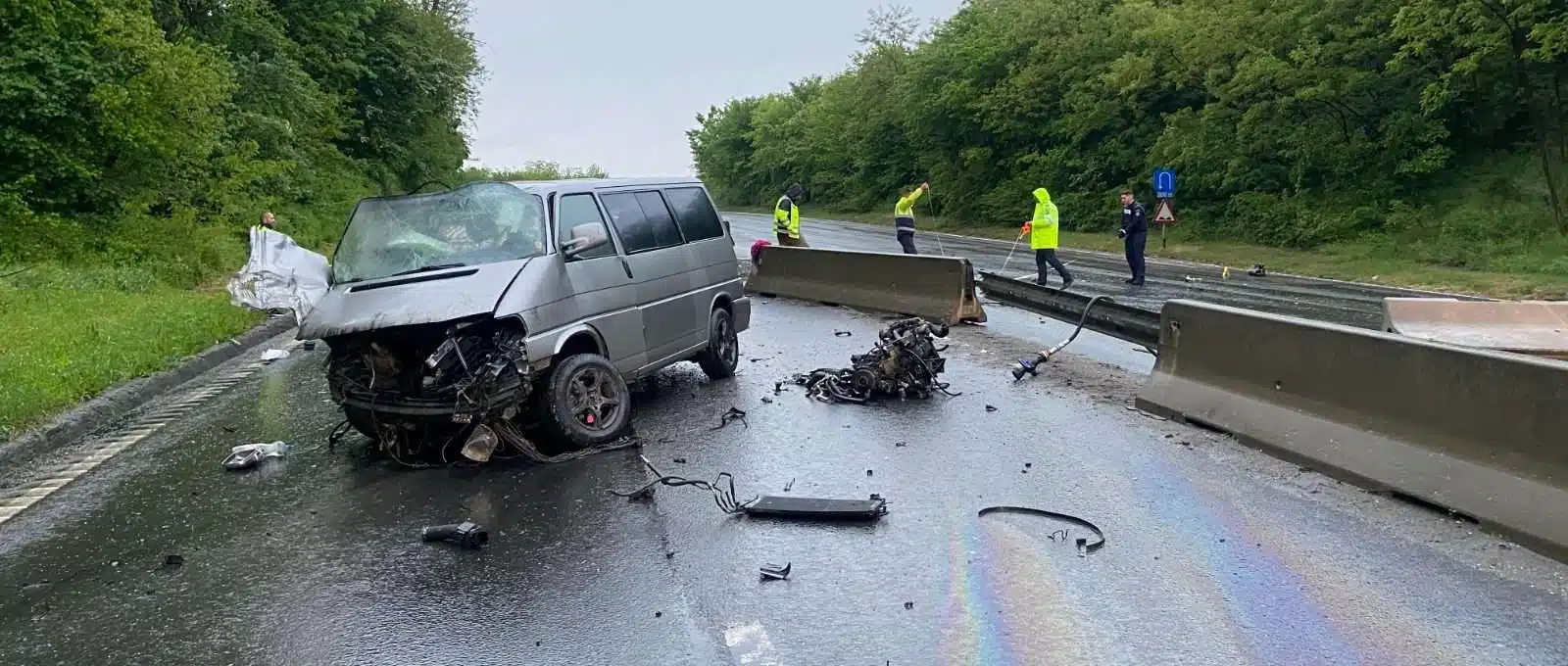 Accident devastator la intrarea în Deva. Șapte bărbați au fost răniți în urma unui impact puternic cu un parapet