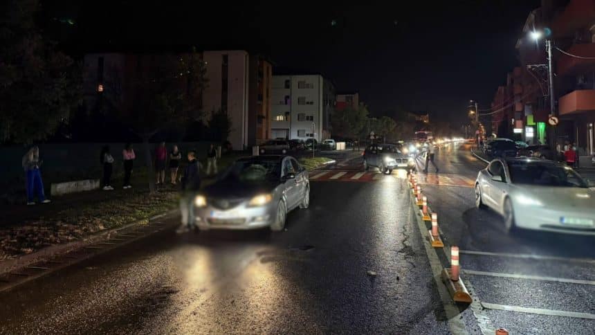 Un accident rutier a avut loc, pe Calea Timișoarei, la ieșirea din localitatea Giroc, înspre municipiul Timișoara. Un bărbat de 36 de ani, aflat la volanul unui autoturism, a surprins și accidentat o tânără de 27 de ani, care se angajase regulamentar în traversarea drumului, pe marcajul pietonal.