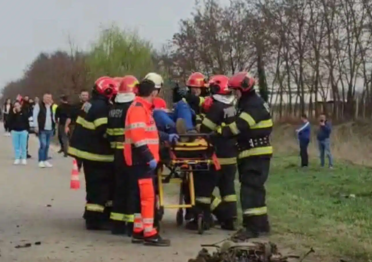 Accident grav de circulație, în Timiș. Un tânăr de 28 de ani a ajuns la spital după ce s-a izbit frontal de un tir. În urma impactului devastator șoferul a rămas încarcerat iar motorul autoturismul a zburat câteva zeci de metri
