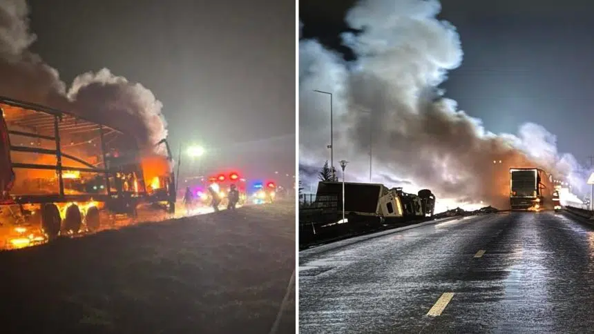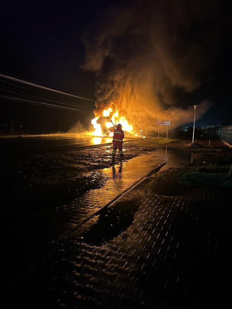 Impact nimicitor pe DN7! Un TIR a luat foc, iar o basculantă s-a răsturnat în șanț – ambii șoferi și-au pierdut viața pe loc