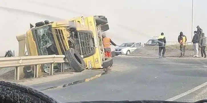 Un bărbat de 70 de ani, aflat la volanul unui tir, a pierdut controlul vehiculului sâmbătă dimineață, în sensul giratoriu de la urcarea pe A1, în direcția Arad, pe DJ 691. Vehiculul s-a răsturnat, iar conducătorul auto a suferit răni în urma incidentului.