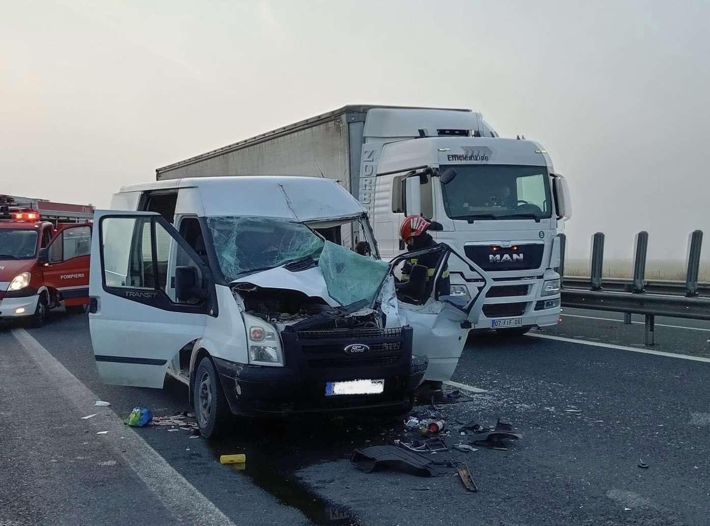 TIMIȘOARA. Intervenție de urgență a pompierilor pentru salvarea unei victime blocate în mașină, după un accident pe autostrada A1, aproape de Vama Nădlac II.