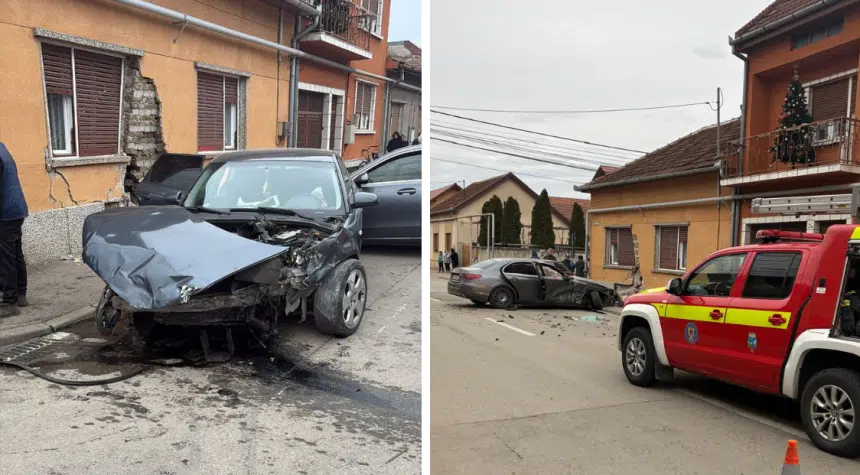 „La data de 24 decembrie 2025, în jurul orei 10:30, polițiștii rutieri au fost sesizați cu privire la producerea unui accident rutier pe strada Tudor Vladimirescu, din municipiul Lugoj. Din primele cercetări efectuate la fața locului, a rezultat faptul că un tânăr de 25 de ani a condus un autoturism pe strada 1 Mai din Lugoj, iar la intersecția cu strada Tudor Vladimirescu a intrat în coliziune cu un autoturism condus de un tânăr de 23 de ani. Ulterior, autoturismul condus de tânărul de 23 de ani a fost proiectat în peretele unui imobil”, precizează cei de la IPJ Timiș.