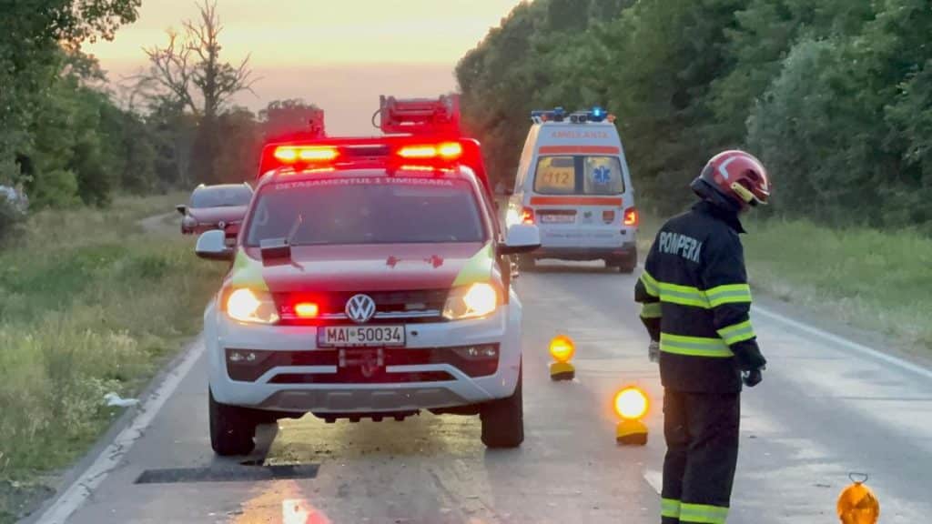 Accident în lanț în nordul Timișoarei. O persoană a ajuns la spital