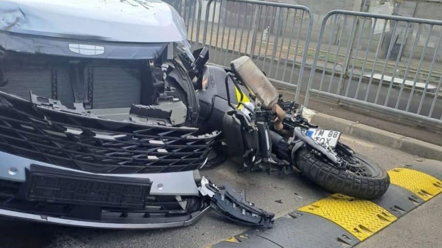 În urma impactului, motocicleta a fost proiectată în autoturismul aflat în fața sa, condus de un bărbat de 46 de ani.