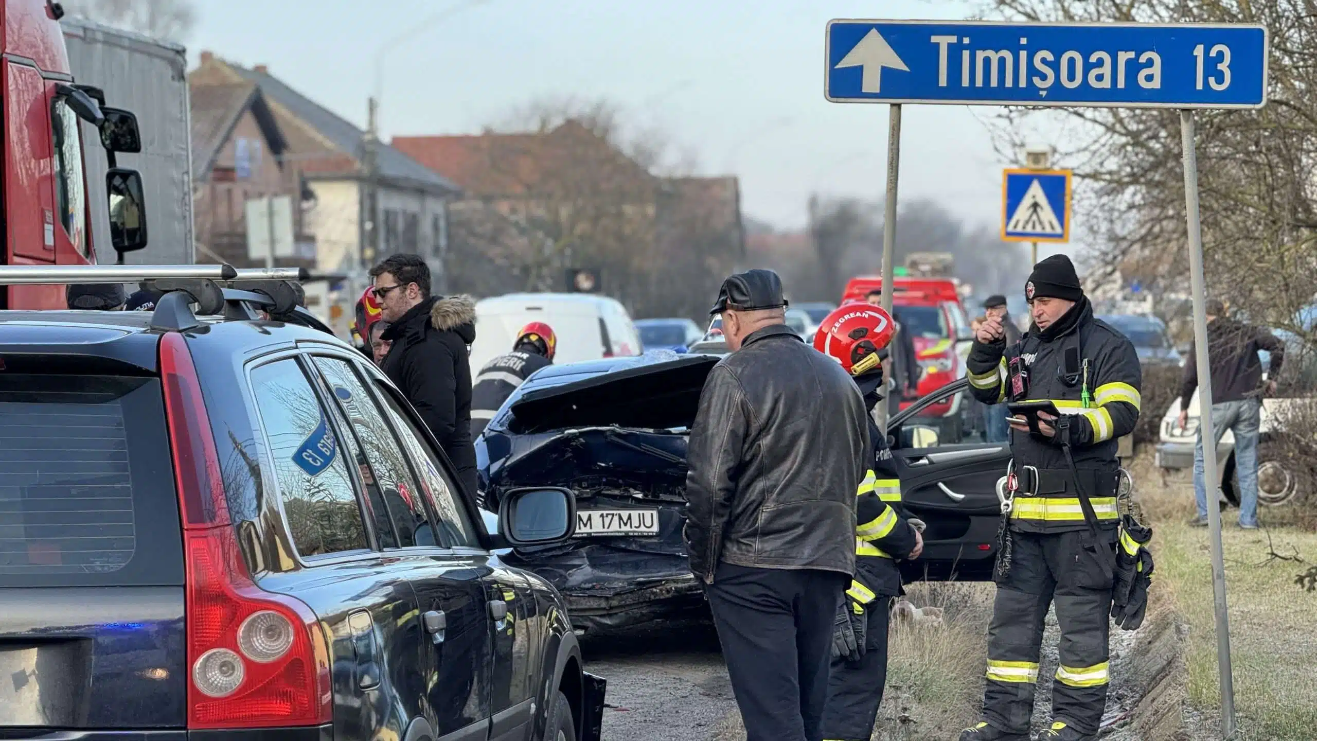 Accident în lanț, lângă Timișoara. O femeie a ajuns la spital.
