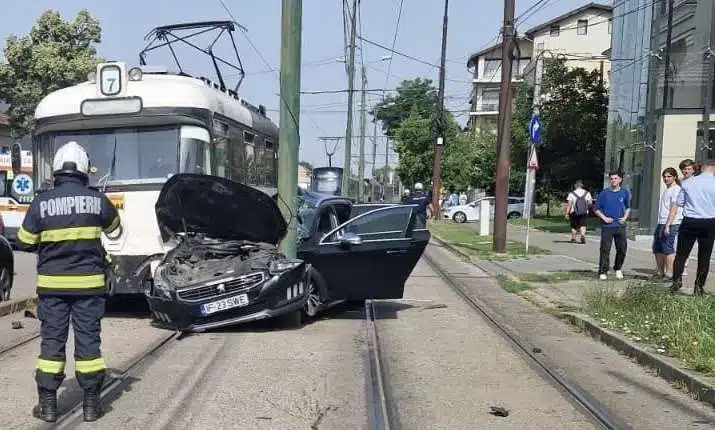Accident rutier în Timișoara. Un bărbat de 51 de ani a fost rănit în urma coliziunii cu un tramvai pe Calea Bogdăneștilor