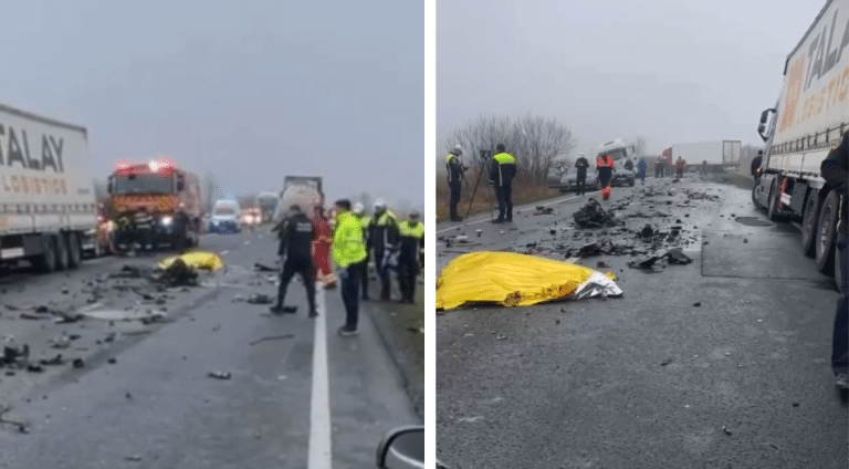 Un accident rutier a avut loc în județul Timiș. Sunt implicate un microbuz de transport persoane, un TIR, o autocisternă și un autoturism