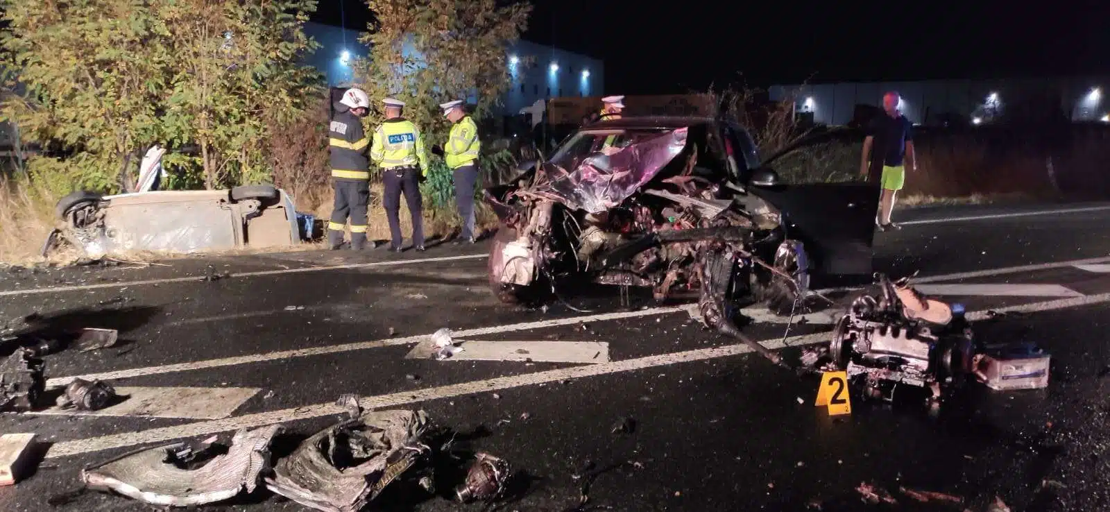 Mașina în care se afla s-a izbit frontal de un autoturism condus de un barbat. În urma impactului devastator mașina condusa de acesta a ajuns cu roțile în sus pe marginea drumului, șoferul de 48 de ani murind pe loc. La fața locului au ajuns mai multe echipaje ale pompierilor, polițiști și două ambulanțe.