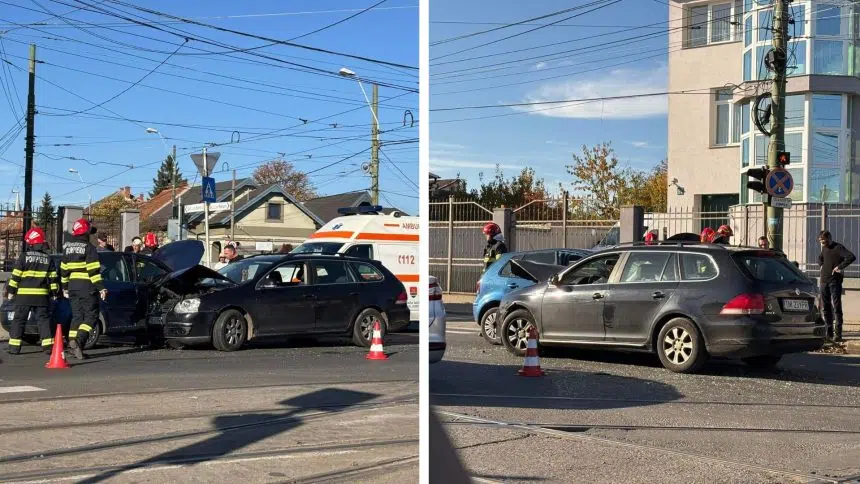 Două mașini implicate într-un accident pe strada Drubeta. Victimele sunt preluate de echipajele medicale