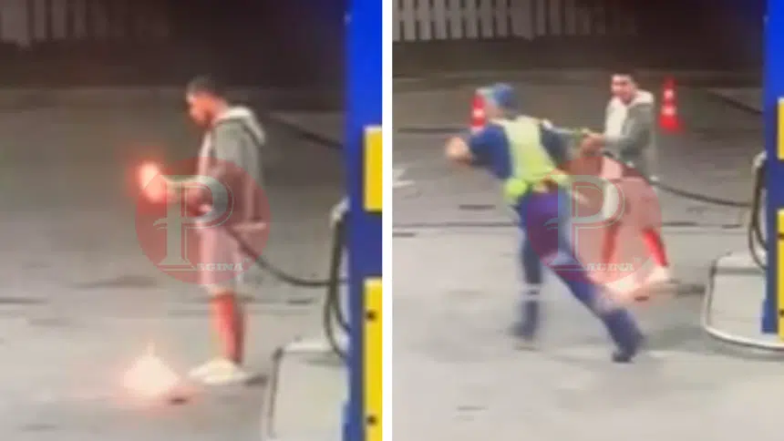 Folosindu-se de pistolul de alimentare, individul a declanșat scurgerea de combustibil și l-a aprins cu o brichetă, provocând o degajare semnificativă de lichid inflamabil.