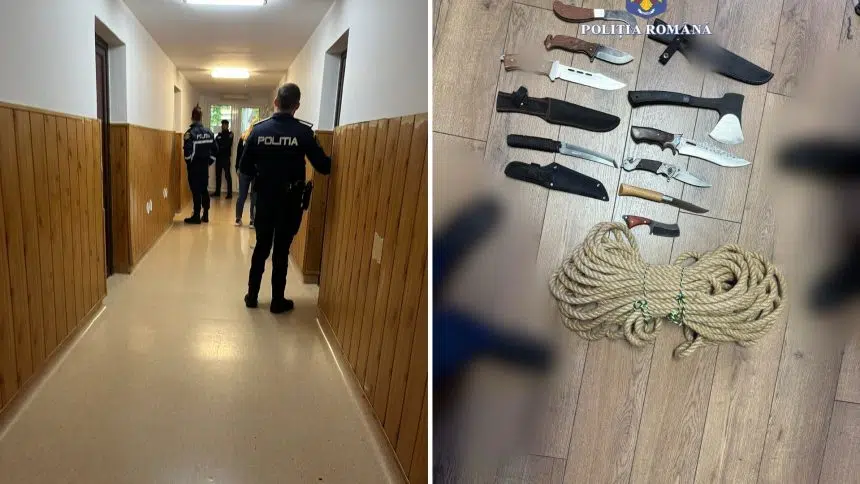 În urma verificărilor efectuate, polițiștii au descoperit că unul dintre tineri deținea în camera sa o colecție de obiecte periculoase, ridicând semne serioase de întrebare asupra intențiilor sale.