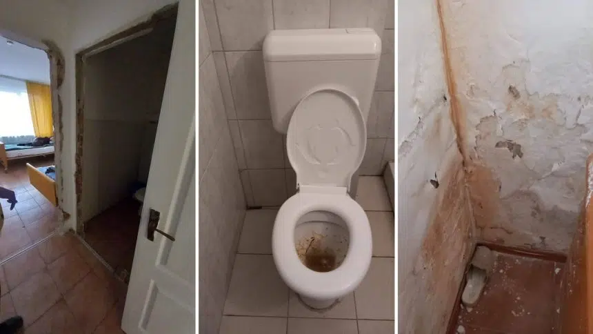• Camere insalubre – Pereții prezentau infiltrații de apă și mucegai, iar saltelele erau murdare și pătrate.