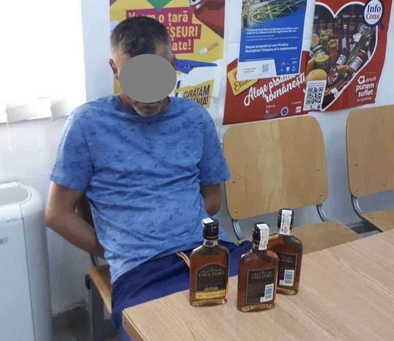 Un bărbat de 39 de ani a fost reținut de polițiștii locali după ce a furat sticle cu băuturi alcoolice dintr-un magazin din Complexul Studențesc