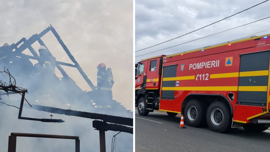 Flăcările au cuprins acoperișul și un șopron. Două persoane au suferit atacuri de panică