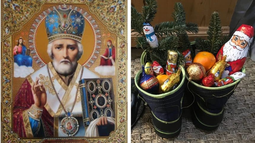 Potrivit tradiției, în noaptea de 5 spre 6 decembrie, copiii cuminți își găsesc ghetuțele pline cu dulciuri, fructe și mici cadouri, în timp ce cei mai puțin ascultători primesc simbolica nuielușă.