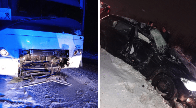 Zeci de pasageri au trăit clipe de șoc după ce un autobuz a fost lovit de un autoturism. Șoferul mașinii a fost transportat la spital