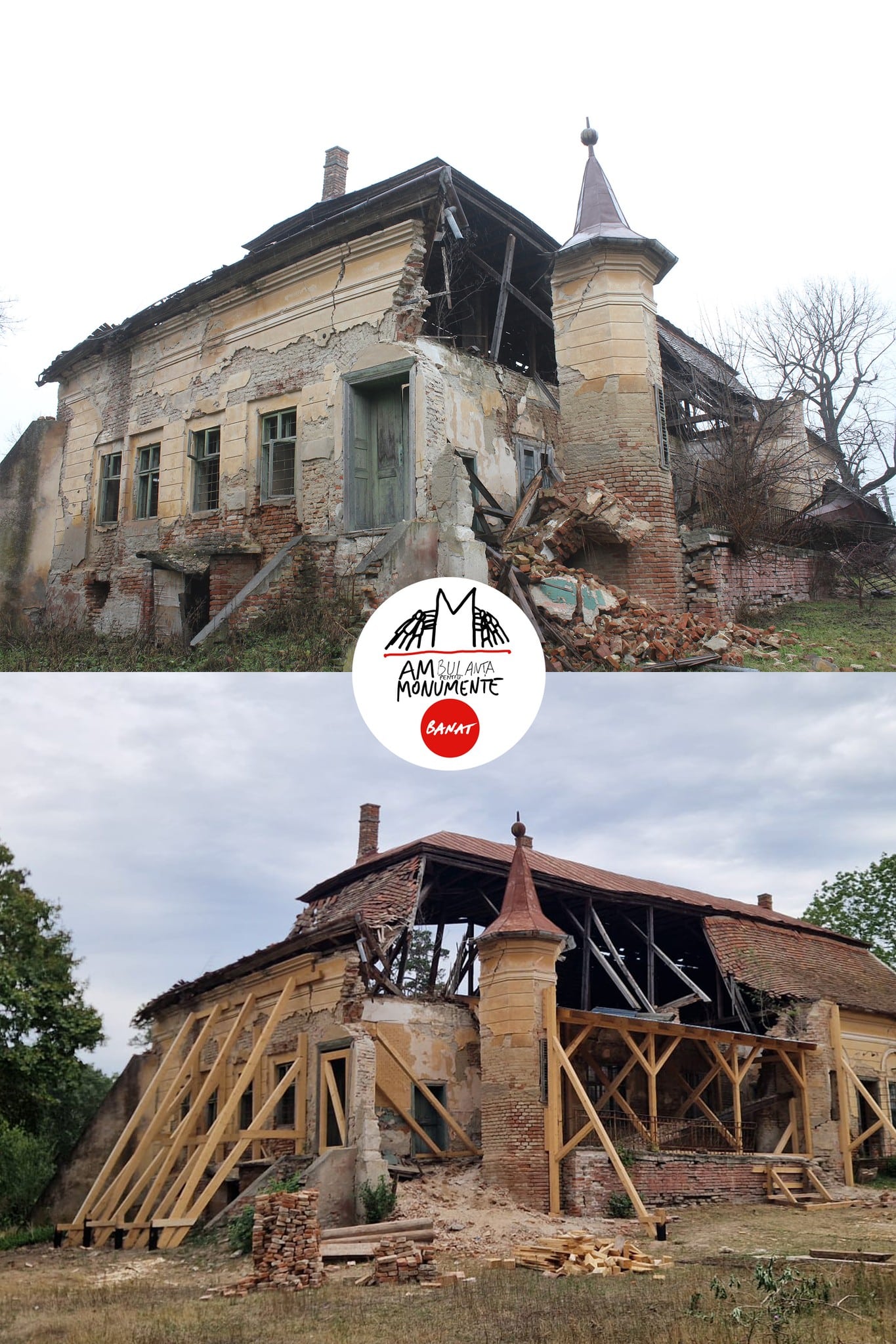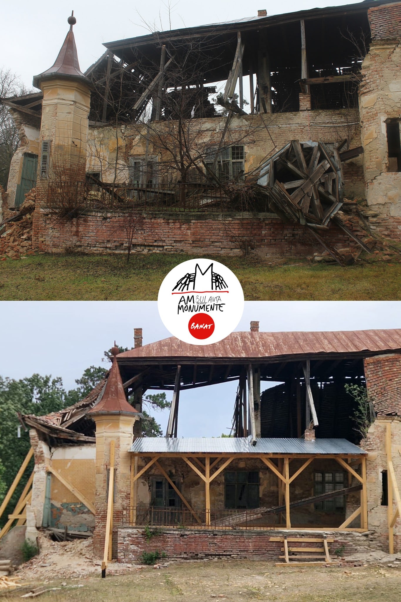 Asociația Prin Banat a reușit, prin intervenția Ambulanței pentru Monumente, punerea în siguranță a construcției grav degradate.