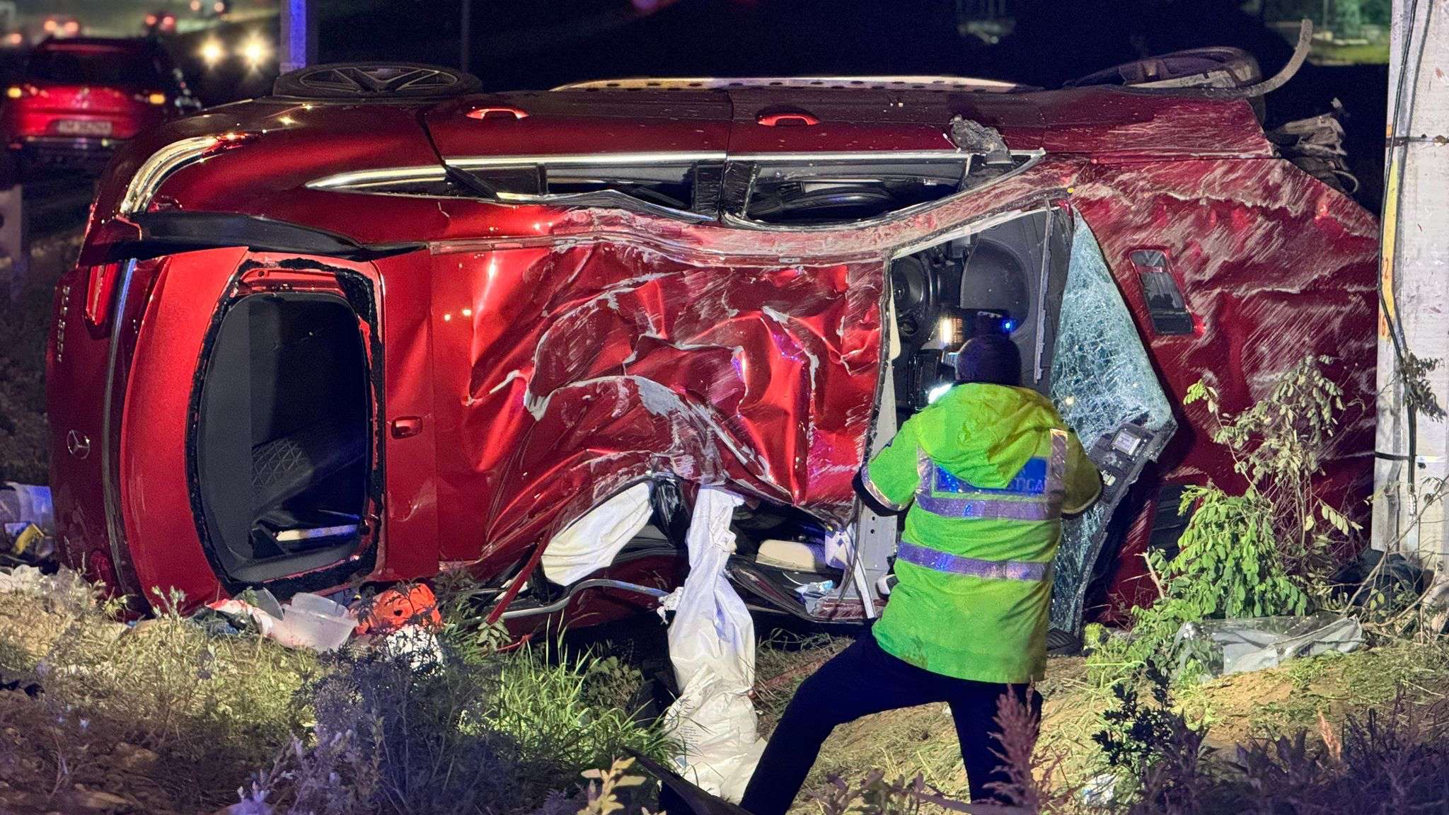 În mașină se aflau și fiica șoferului, în vârstă de 39 de ani, și nepotul acestuia, un copil de doar patru ani. Toți trei au fost răniți, femeia fiind în stare gravă, intubată la fața locului și transportată de urgență la spital. Copilul a suferit o fractură de femur.