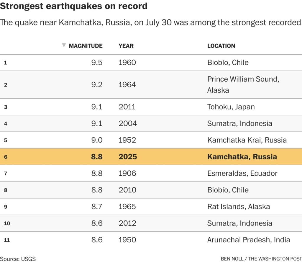 Seismul, localizat la o adâncime de 20 de kilometri și la aproximativ 1.600 km nord-est de coasta Japoniei, este considerat al șaselea cel mai puternic din istoria înregistrată, potrivit Serviciului Geologic al Statelor Unite (USGS).