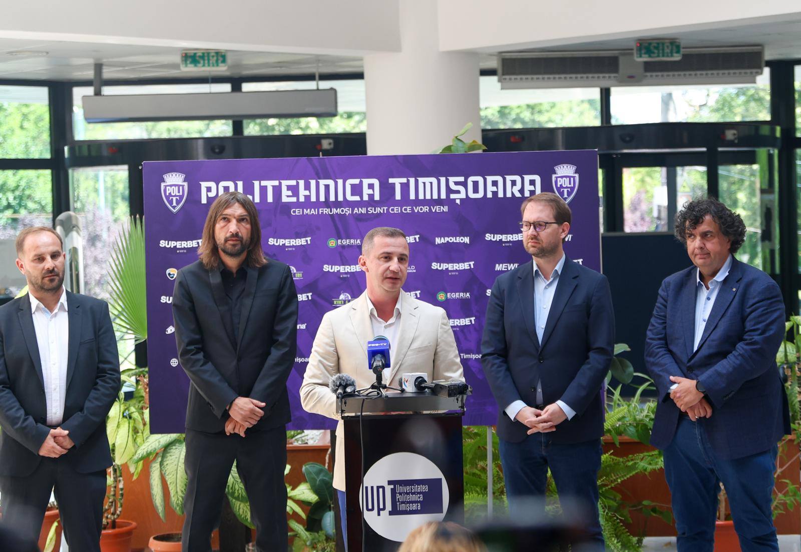 La Biblioteca UPT a avut loc astăzi o conferință de presă care marchează oficial începutul unei colaborări fără precedent între Universitatea Politehnica Timișoara, Consiliul Județean Timiș și Primăria Municipiului Timișoara, având ca scop revitalizarea clubului de fotbal Politehnica Timișoara. Noul antrenor principal, Dan Alexa, a fost prezentat public, alături de liderii instituțiilor implicate.