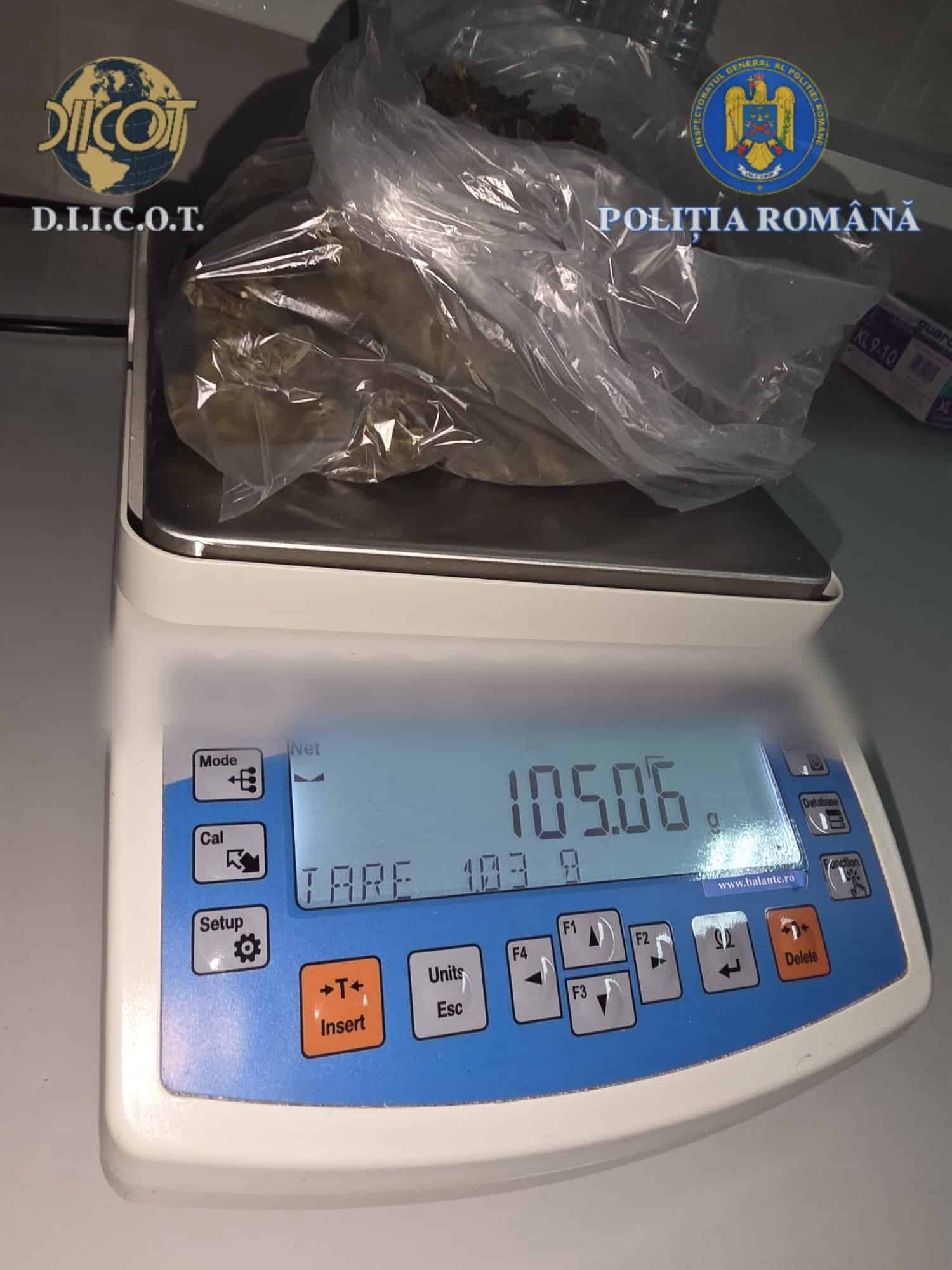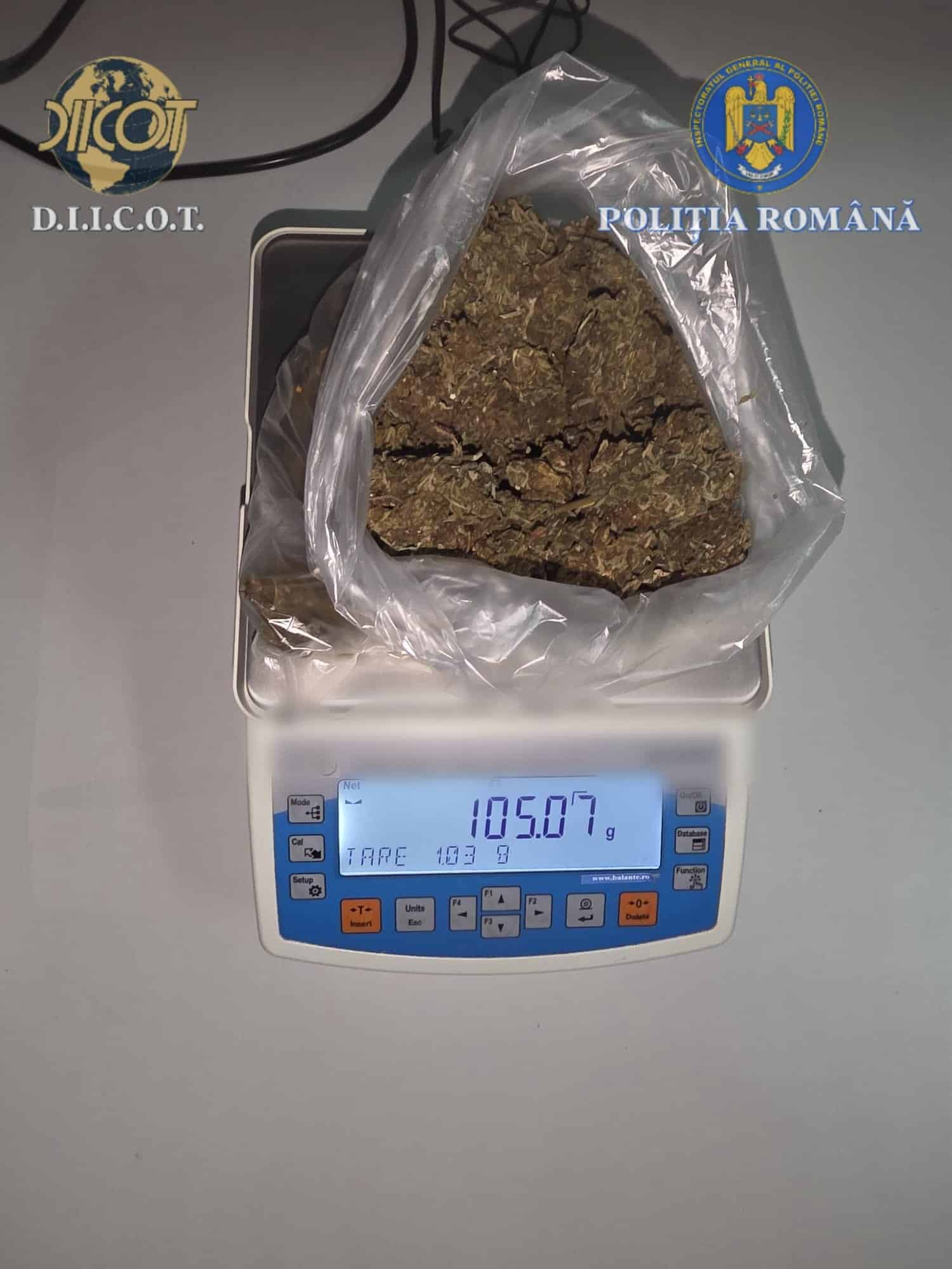 Au fost puse în executare 3 mandate de percheziție domiciliară, în localitatea Cenei, în urma cărora, în locuința tânărului de 24 de ani, au fost descoperite și ridicate aproximativ 110 grame de canabis, un grinder, un cântar electronic, precum și alte mijloace de probă.