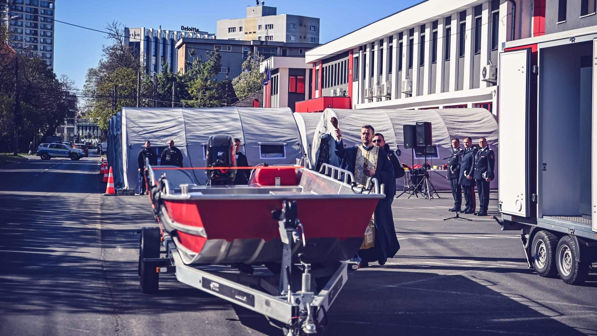 Totodată, pompierii au primit echipamente noi, care îi ajută să intervină mai eficient în situații dificile. Printre acestea se numără o ambarcațiune adaptată inclusiv pentru ape mici sau greu accesibile, un sistem modern pentru uscarea rapidă a echipamentelor de protecție și un container logistic complet echipat, util atunci când intervențiile sunt mai complexe și durează mai mult.