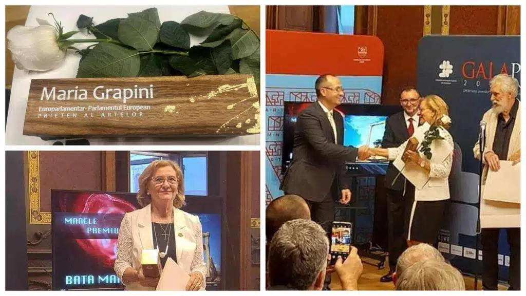 ,, Eu întotdeauna și când eram în mediul de afaceri, femeie de afaceri, am susținut cultura, prin fapte, cu adevărat. Cred cu tărie, cu atât mai mult de când am intrat în politică, faptul că fiecare națiune se identifică în lume cu valorile autentice, ori arta. Arta vizuală este extrem de importantă pentru a ne indentifica în lumea globală, în lumea europeană și atunci am început să susțin, de când eram în business taberele de pictură, să premiez artiști plastici, să premiez copii talentați. Cea mai mare bucurie a mea a fost când am primit aceste premii, dar și faptul că vălul acesta negru care se trage peste valorile României încet, încet, începe să se deschidă. Oamenii identifică oameni care cu adevărat susțin prin fapte și nu prin vorbe”, susține Maria Grapini.