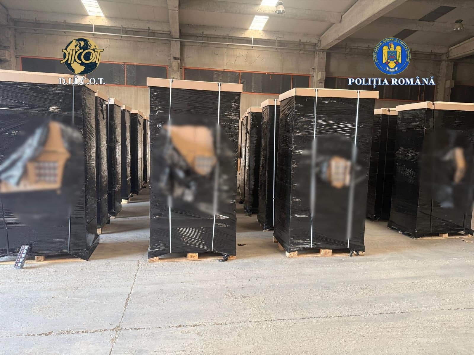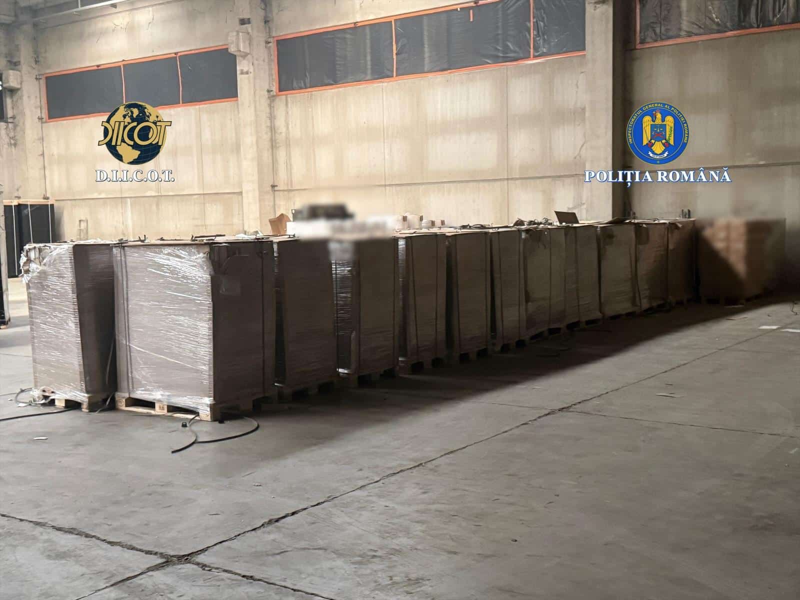 În timpul perchezițiilor, anchetatorii au descoperit, într-o locație situată la periferia municipiului Timișoara, o fabrică ilegală de țigări aflată în plină funcțiune. În interior au fost găsite sute de baxuri de țigarete și cantități uriașe de tutun, estimate la ordinul tonelor.