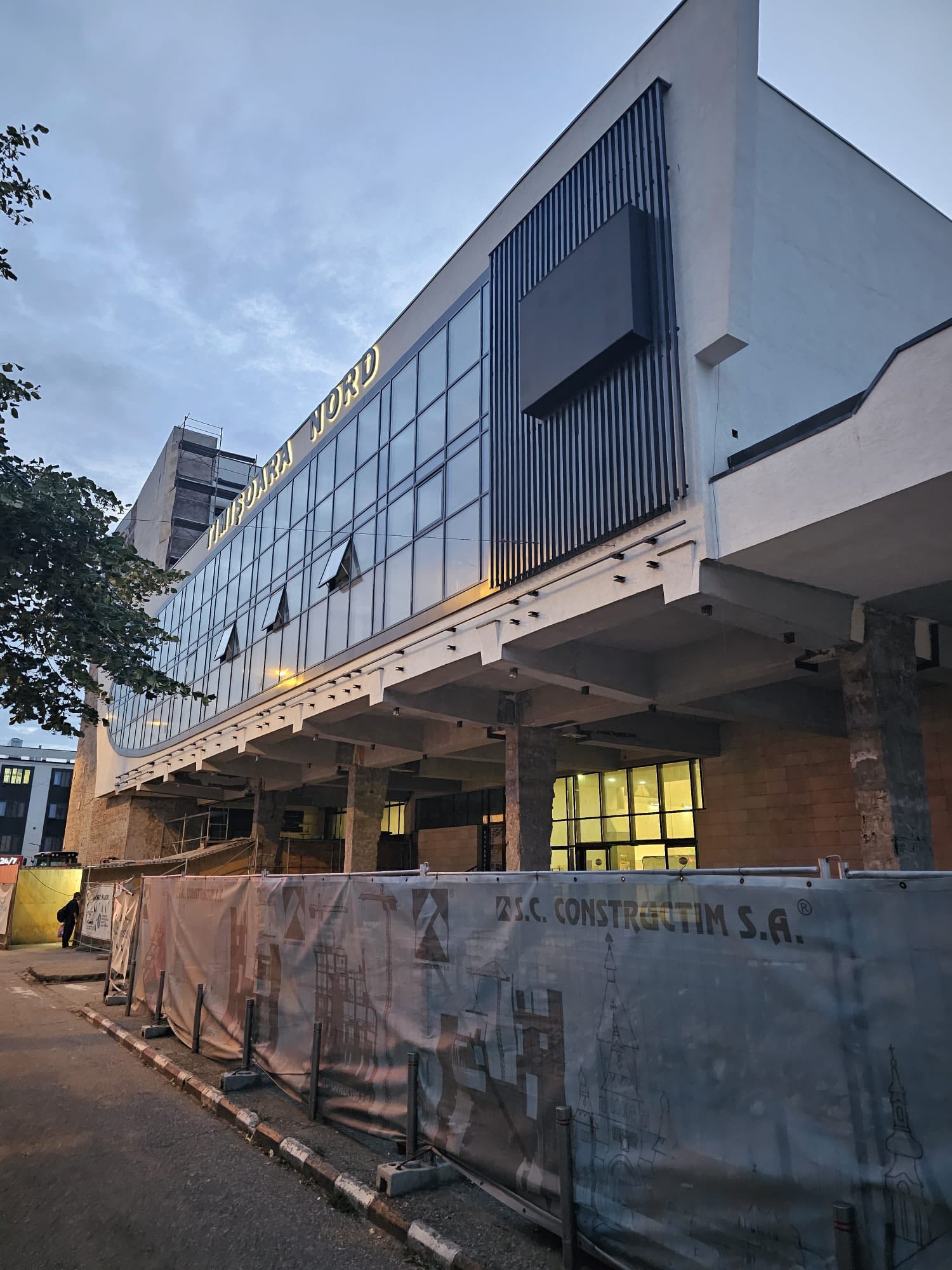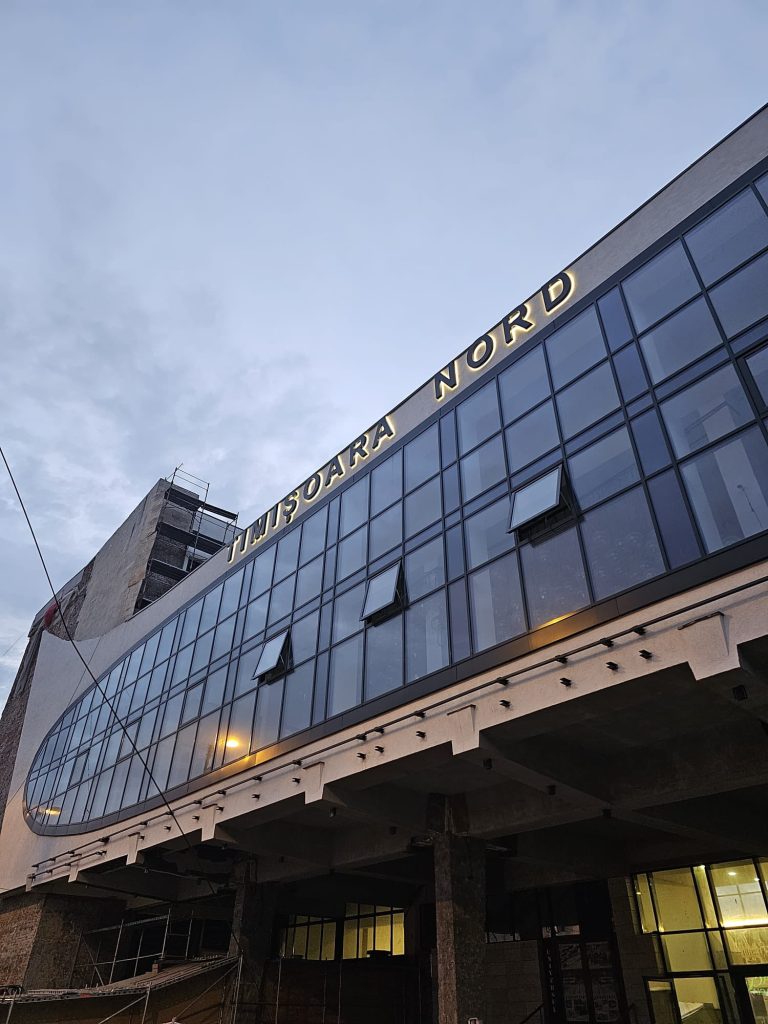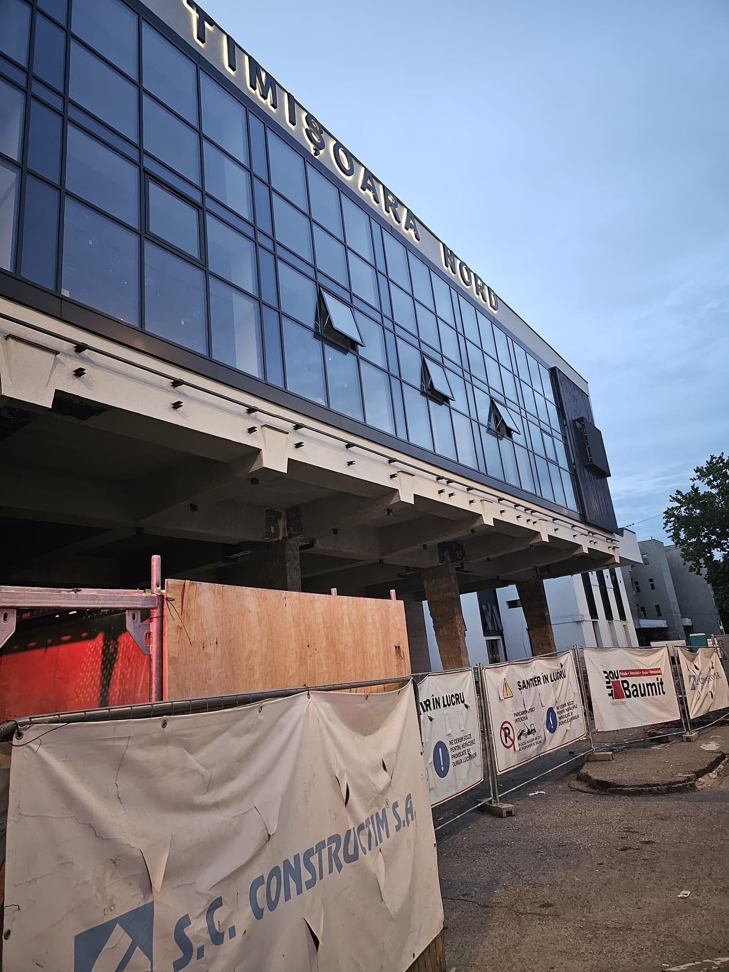 „Proiectul de Reabilitare al Gării de Nord Timișoara continuă!Schela de pe corpul principal al caselor de bilete a fost demontată, iar acum ne pregătim pentru o nouă fațadă modernă: pereți cortină, riflaje metalice elegante, benzi LED luminoase și ecrane LED care vor transforma complet aspectul”, transmite compania Constructim.