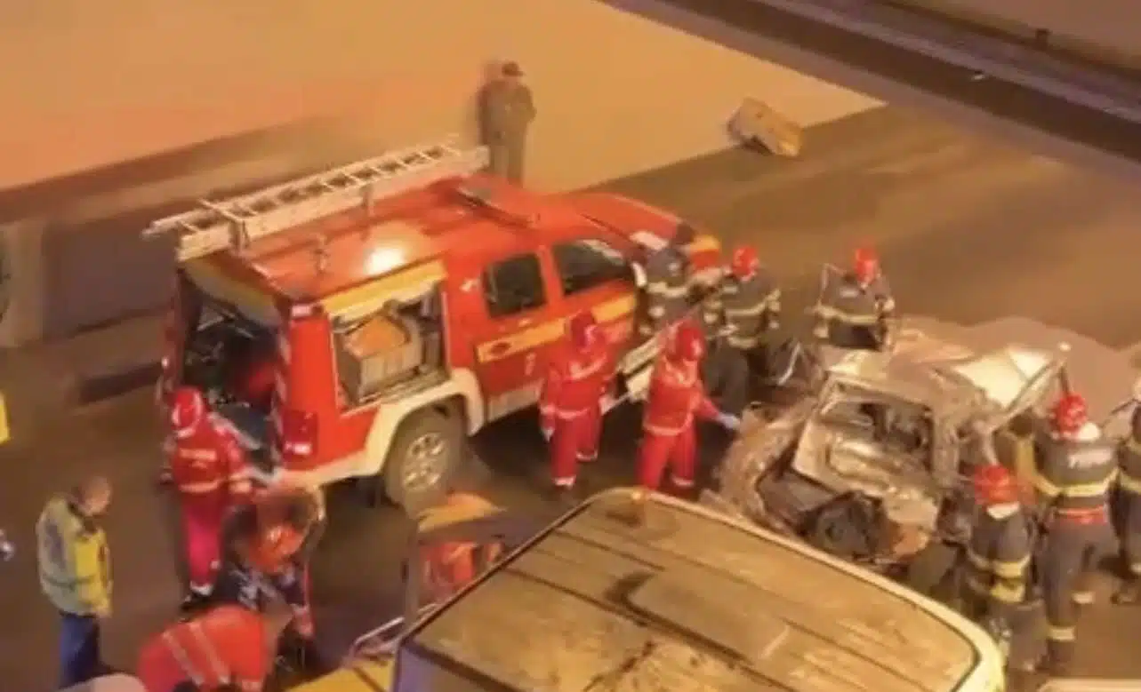 Tragedia s-a petrecut azi noapte in Pasajul Michelangelo din Timisoara. Soferul, un tanar de 21 de ani, a pierdut controlul volanului iar autoturismul a ricosat in peretele pasajului, s-a rotit de cateva ori pe sosea iar apoi a fost proiectat intr-o autoutilitara a Serviciului de Transport Public din Timisoara. Impactul a fost atat de puternic incat spatele autoturismului a fost zdrobit iar cei doi tineri, o fata si un baiat de doar 20 de ani, au murit pe loc.