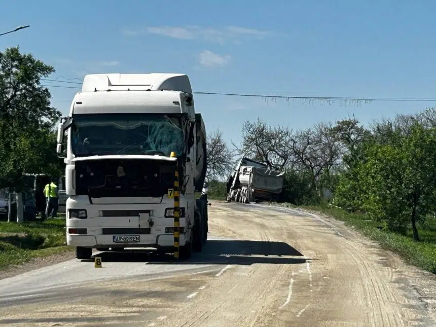 Un bărbat de 35 de ani a fost rănit și transportat la spital după ce a intrat în coliziune cu un alt TIR care circula regulamentar. Poliția a deschis un dosar penal.