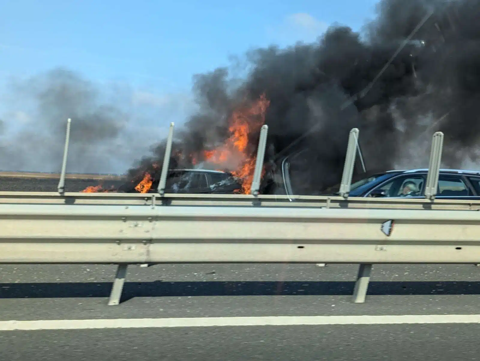 Un autoturism a fost distrus complet de flăcări într-un incendiu puternic izbucnit pe autostrada A1, între kilometrii 520 și 522. Pompierii militari din cadrul Detașamentului Arad au intervenit rapid cu o autospecială de stingere pentru a controla situația.