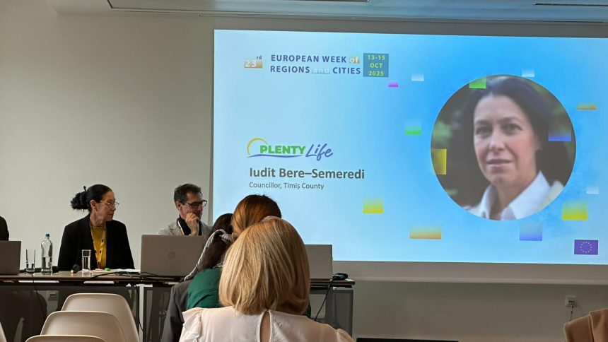 Consiliul Județean Timiș a prezentat la Bruxelles, în cadrul Săptămânii Europene a Regiunilor și Orașelor, proiectul PLENTY-Life (LIFE101081061), considerat un exemplu european de bună practică pentru orașele mici și mijlocii în domeniul energiei curate.