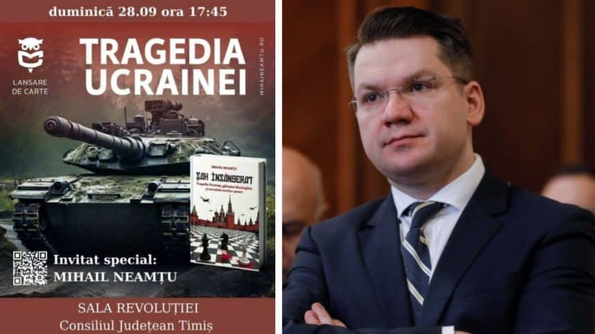 Mihail Neamțu își lansează duminică, la Timișoara, cartea „Șah însângerat. Tragedia Ucrainei, gâlceava ideologiilor și secretele marilor puteri”. USR îl acuză de propagandă pro-Kremlin. CJ Timiș se delimitează de conținutul volumului sau opiniile autorului