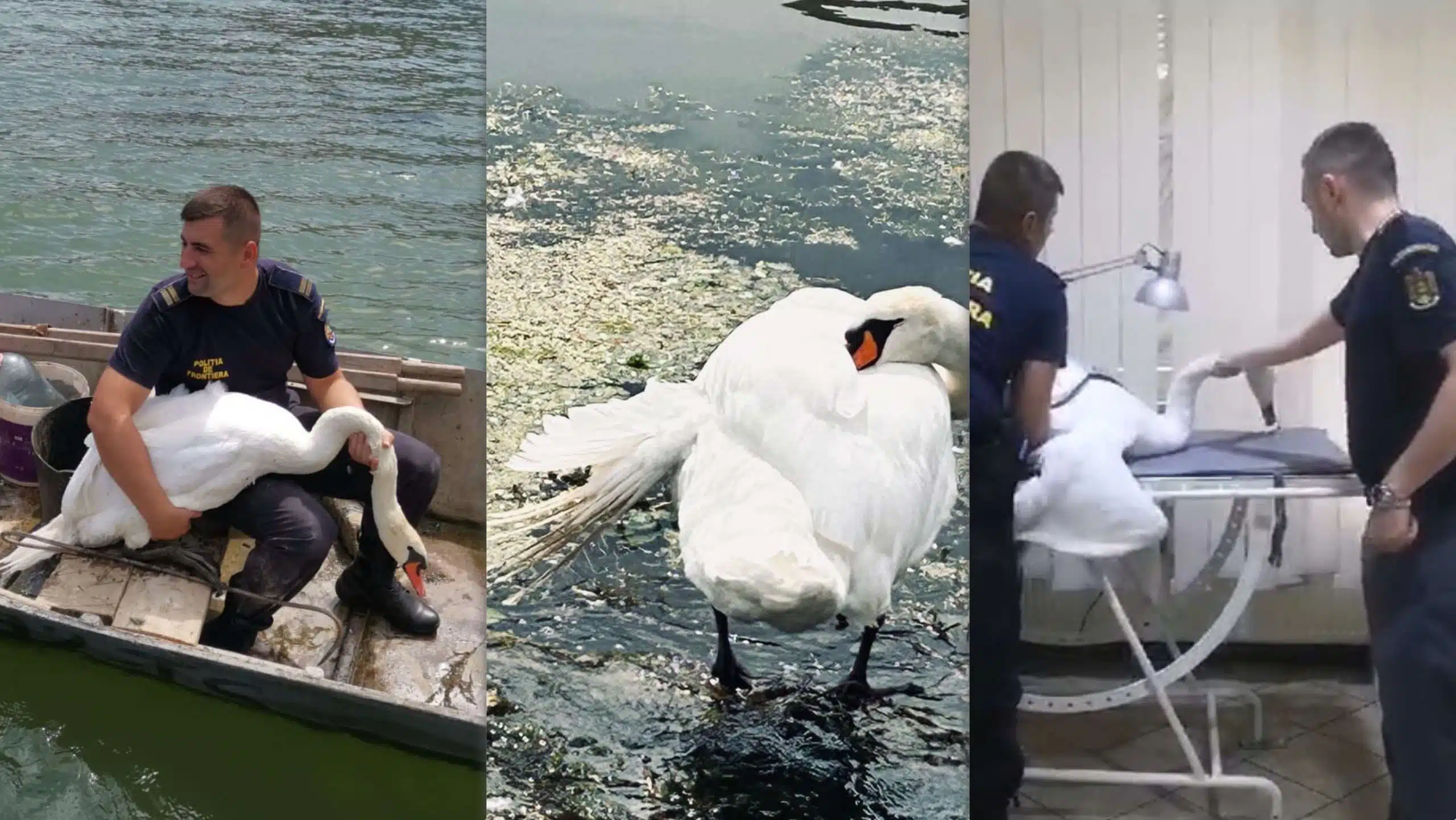 Polițiștii de frontieră din cadrul Sectorului Poliției de Frontieră Orșova, sub coordonarea I.T.P.F. Timișoara, au intervenit rapid într-o misiune specială pentru a salva o lebădă rănită, observată de un cetățean în zona Golfului Dubova, pe fluviul Dunărea.