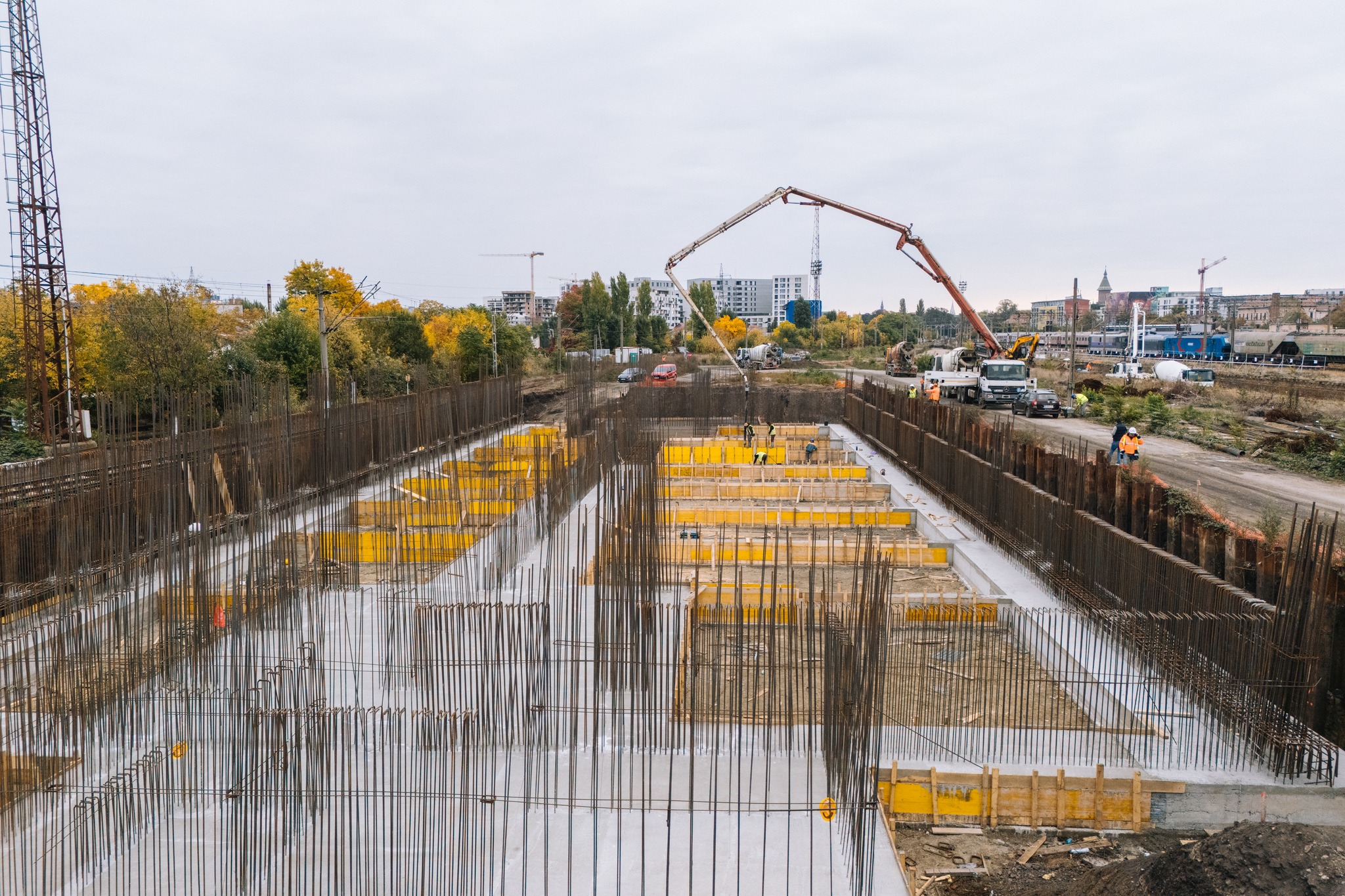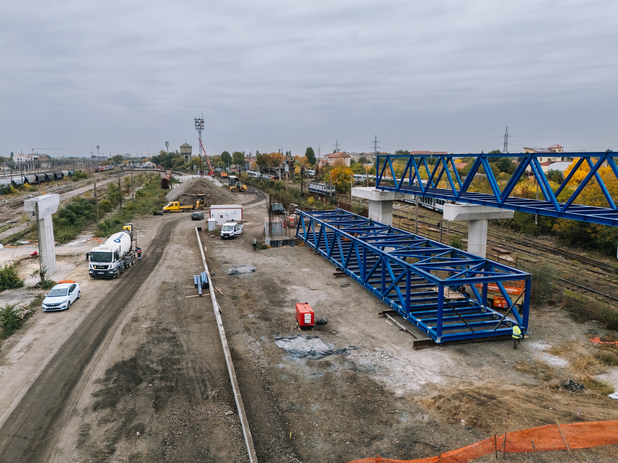 În același timp, pe șantier se desfășoară activități de descărcare a elementelor prefabricate destinate noilor peroane.