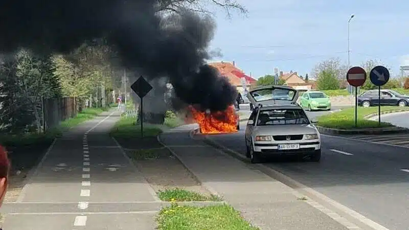 Mașina unui bărbat din Arad a luat foc chiar în timpul mersului și în scurt timp a ars complet. Șoferul a avut la dispoziție puțin timp să se salveze.