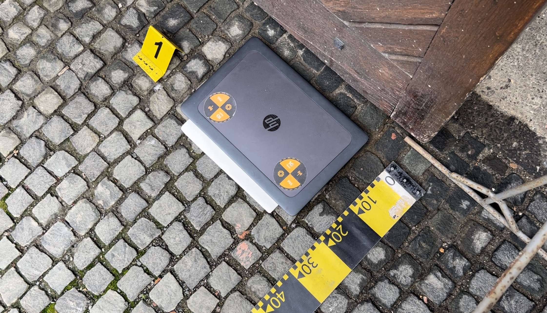 Camerele de supraveghere il surprind pe individ in timp ce abandonează laptopul iar apoi se îndepărtează. Politistii incearca sa il identifice.