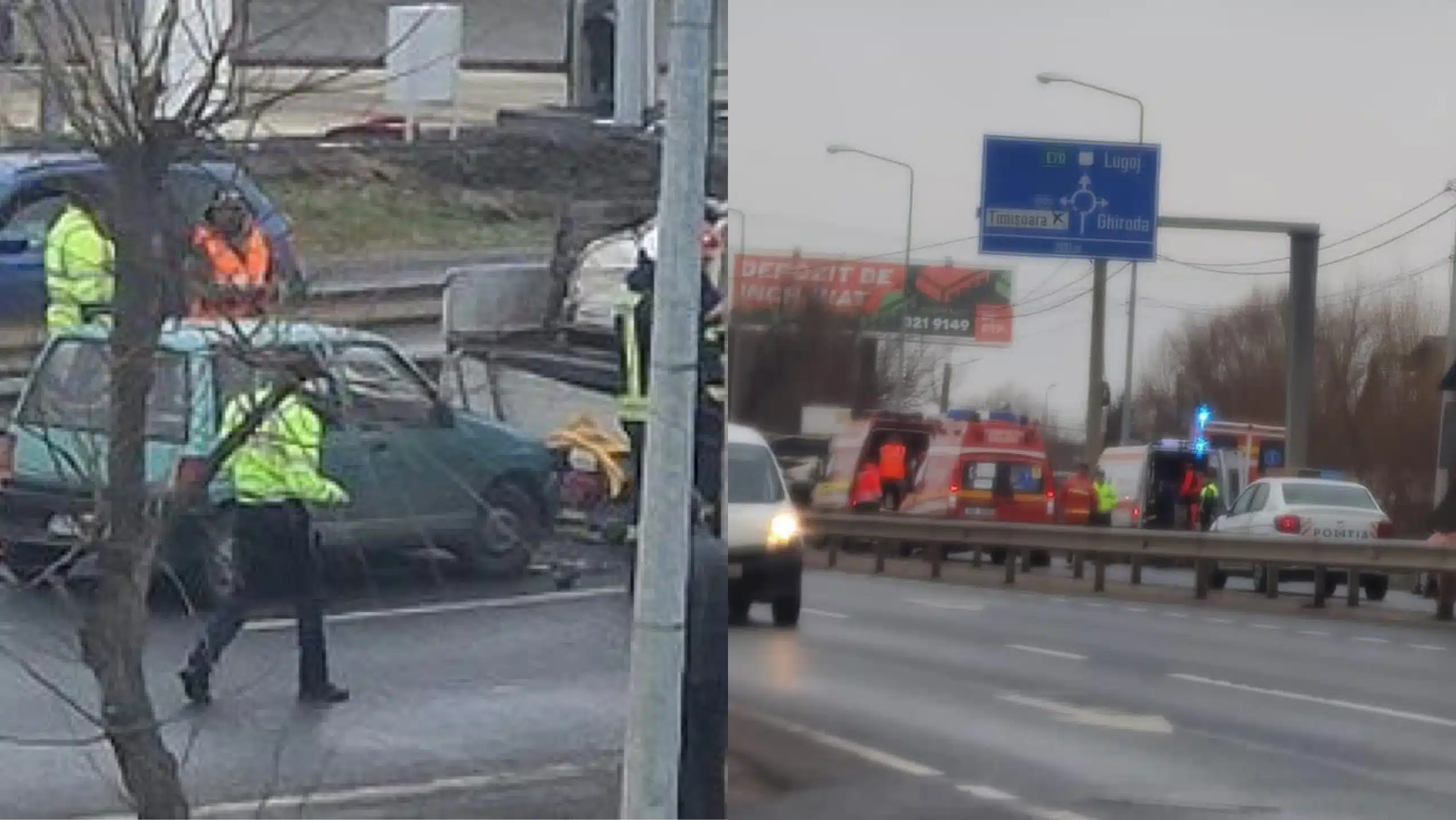 Accident grav, la ieşirea din Timișoara. Un autoturism condus de o șoferiță de 86 de ani a intrat în plin în doi muncitori care executau lucrări la carosabil.