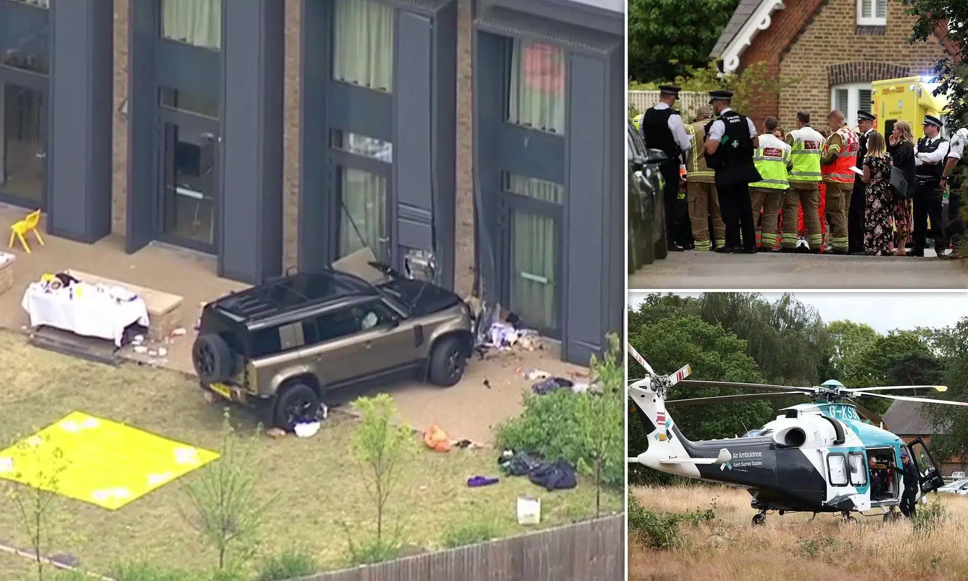 Potrivit Daily Mail, imaginile de la faţa locului arată cum mese şi scaune de exterior au fost zdrobite de vehiculul 4×4 când acesta s-a ciocnit de peretele exterior al holului principal. Se crede că şoferul ar fi fost o femeie care a suferit un „incident medical” în timp ce se afla la volan.