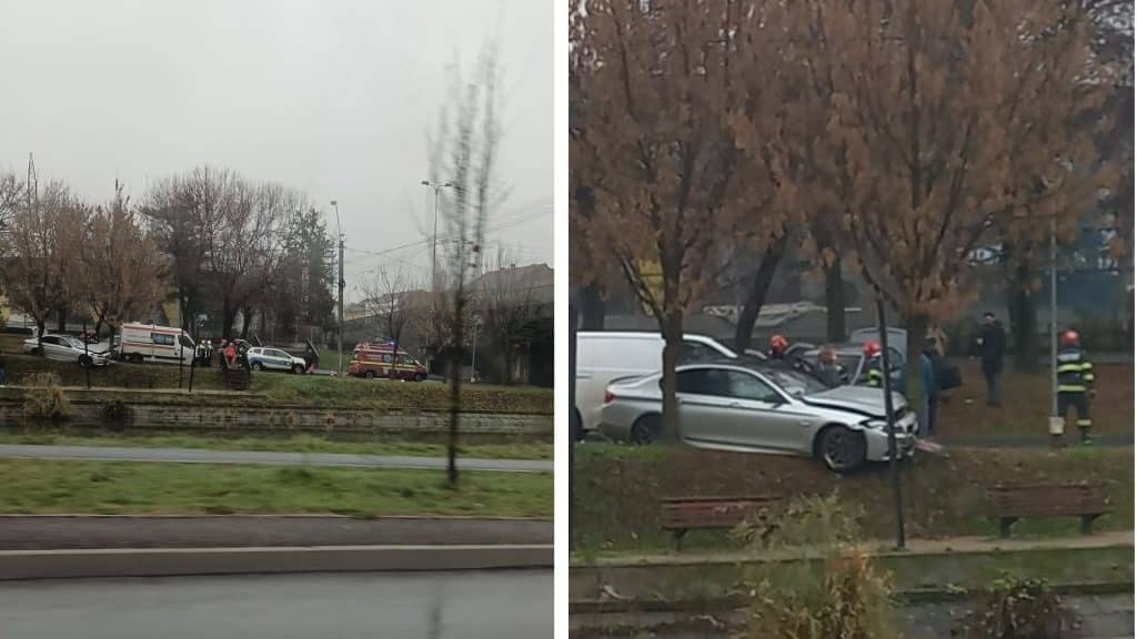 O mașină, la un pas să cadă în Bega! Un adult și un minor transportați la spital