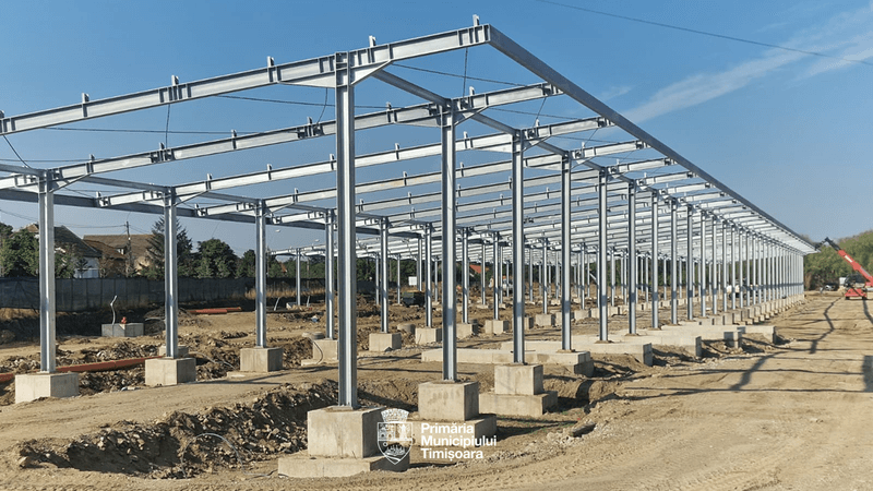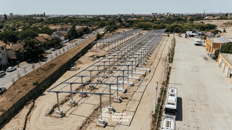 Până în prezent, constructorul a turnat fundațiile și piloții pentru structura metalică, iar rețeaua pentru apa pluvială a fost finalizată. În perioada următoare, urmează execuția platformei propriu-zise, montarea celor două copertine, instalarea panourilor fotovoltaice și finalizarea instalației electrice.