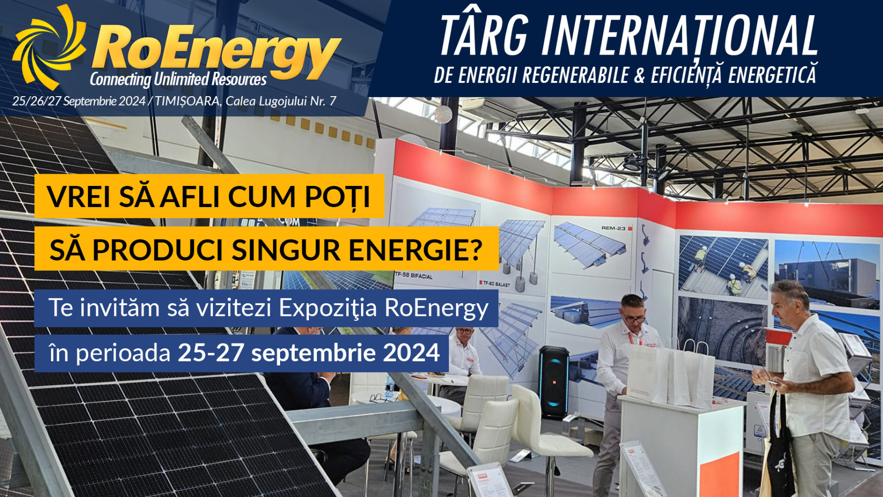 Este vorba de RoEnergy South-East Europe, România-Timişoara 2024 – Târgul International de Energii Regenerabile și Eficiența Energetică Nr.1 in România din 2010, ediția a VII-a în Timişoara, ce se desfăşoară în perioada 25 – 26- 27 Septembrie 2024, la Pavilion Expovest (Complex Hotel Senator), Calea Lugojului, nr.7, Ghiroda, jud. Timiş.