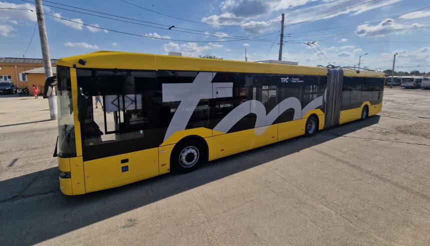 Primul troleibuz din cele 25 achiziționate de Primărie a ajuns la Timișoara. Vehiculul are 18 metri lungime și o capacitate de transport de până la 140 de pasageri. Este dotat cu aer condiționat, prize USB, internet Wi-Fi, scaune cu încălzire și sisteme moderne de siguranță.