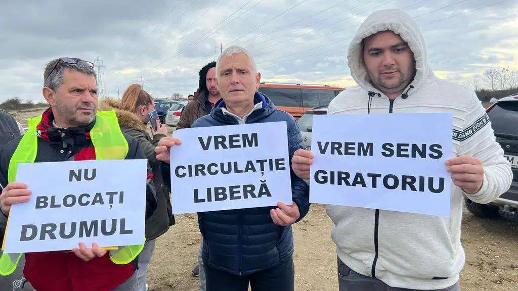 Protest in aceasta dupa-amiaza la viitoarea centura a Timisoarei. Zeci de oameni s-au adunat pentru a atrage atentia autoritatilor asupra necesitatii unui sens giratoriu in locul drumului de ocolire.