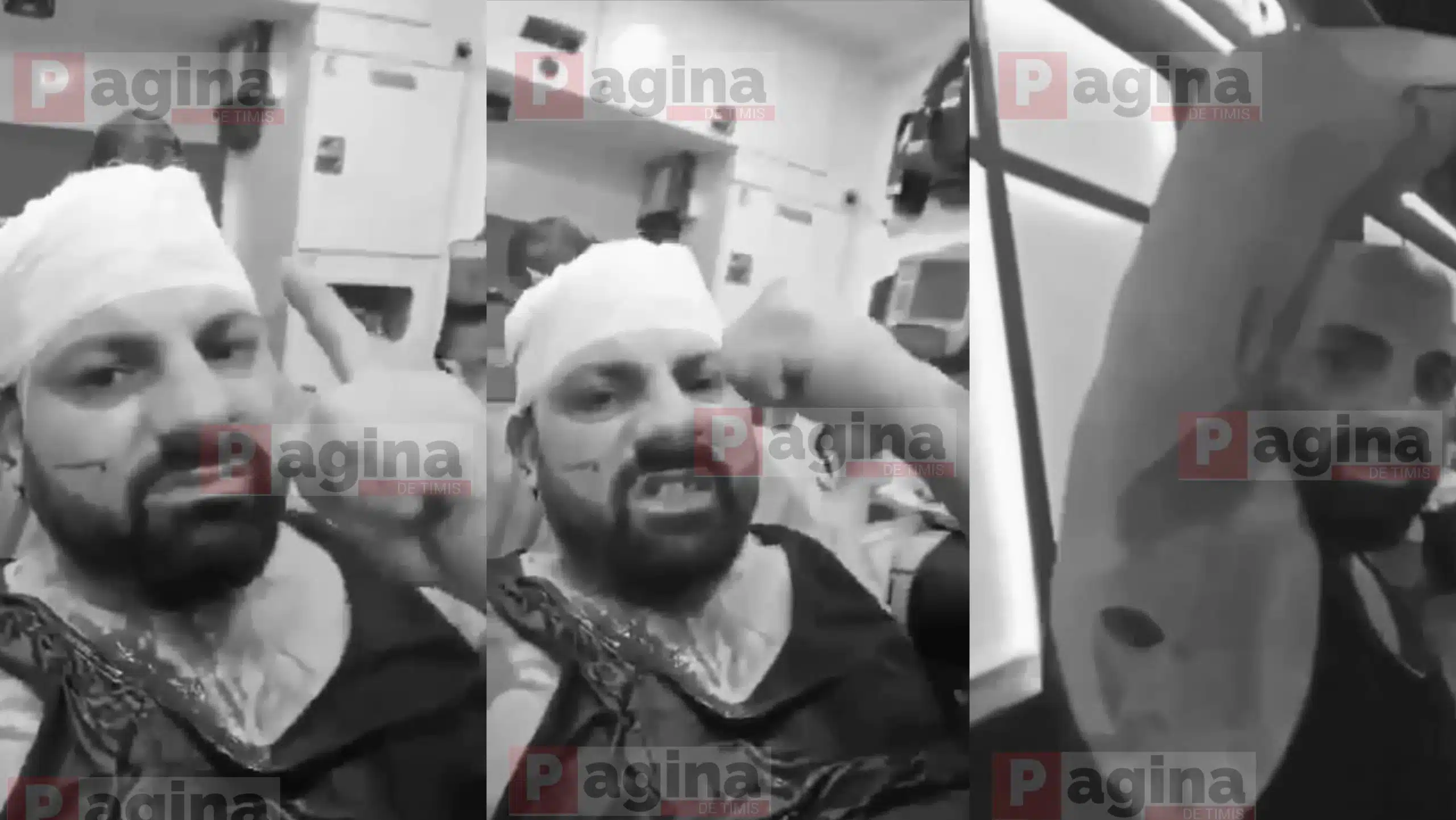Bărbatul de 41 de ani a fost rănit în zona gâtului și a capului. A pus mâna pe telefon și a înregistrat un mesaj prin care își amenință agresorul cu răzbunarea.