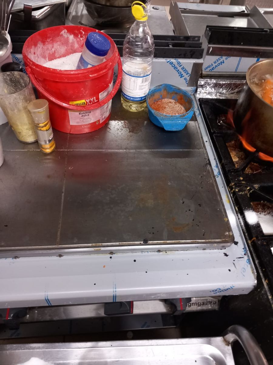 -atat în zona blocului alimentar cat și la bar nu există coșuri de gunoi acoperite, iar pentru spălarea veselei se utilizeaza detergent pentru vase – pasta pentru uz casnic(nu pt uz comercial)